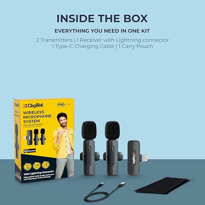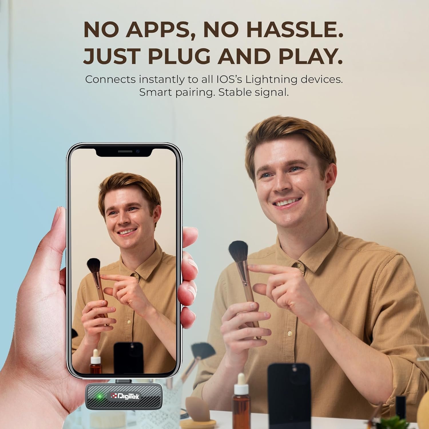 Digitek DWM-009 PRO 2.4G Wireless Microphone with Lightning Receiver – Dual Mic for iPhone X/11/12/13/14 Series