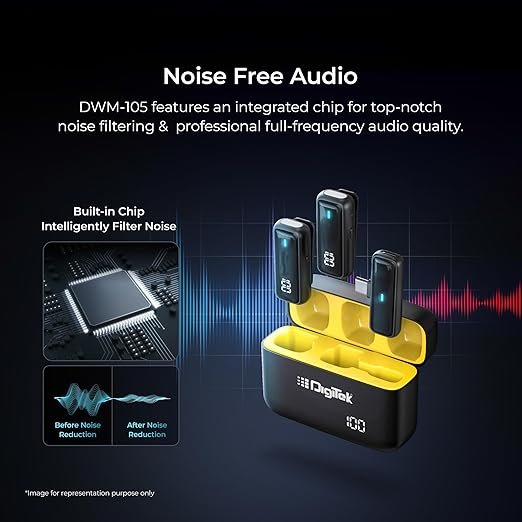 The Digitek® DWM 105 2-in-1 Wireless Microphone System is engineered for creators who need reliable and high-quality audio recording on smartphones. With dual compatibility for Android and iOS, ANC mode, and plug-and-play auto pairing, this microphone system ensures seamless broadcasting and content creation.