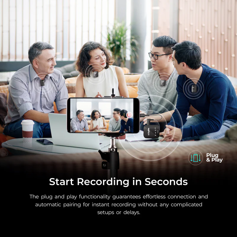 This advanced wireless system allows you to record up to four speakers simultaneously, making it ideal for: